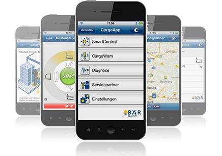 The Bär CargoApp accesses the Cargolift via Bluetooth and enables remote control via smartphone "Bär SmartControl" as well as fault diagnosis of electrical faults.Bär CargoWarn (2012)