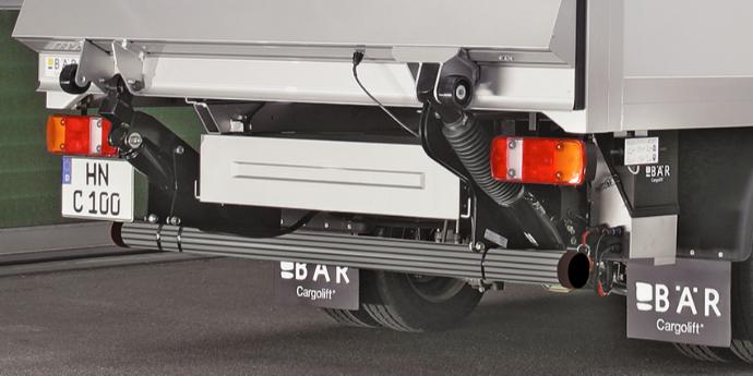 The principle of the "under-swing lift" in a new dimension: Bär Cargolift HydFalt as the first fully hydraulic folding retractable lift is not only comfortable, but also decisively faster when used frequently. HydFalt, with the world's first aluminium sliding mechanism, is completely pre-assembled and simply bolted to the vehicle frame.
